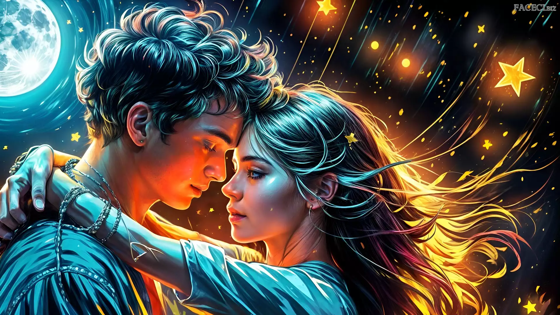 Gwiazdy, Para, Grafika, Dziewczyna, Chłopak - faceci.biz